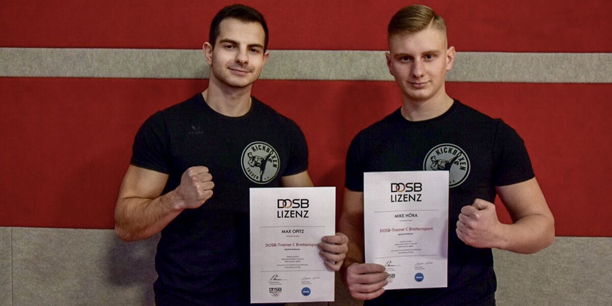 Im Rahmen der Gürtelprüfung wurden den beiden Trainern Mike Höra und Max Opitz ihre Trainer-C-Lizenzen übergeben.